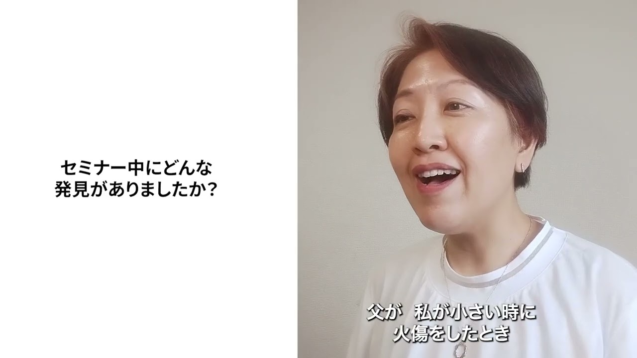 セミナーで、自分の理想と違っていて腹を立てていた父の。いい面も悪い面も受け入れることが出来たことを通して、人も自分も「そのままでいいんだ」と思えるようになりました。